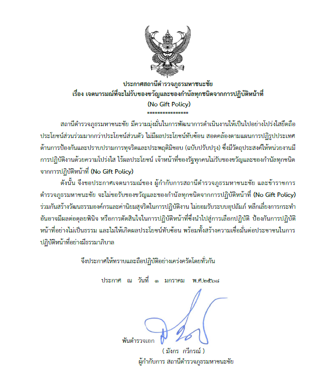 สถานีตำรวจภูธรมหาชนะชัย ขอร่วมรณรงค์สร้างความตระหนักในเรื่องความปลอดภัยบนท้องถนน และสร้างให้เกิดจิตส