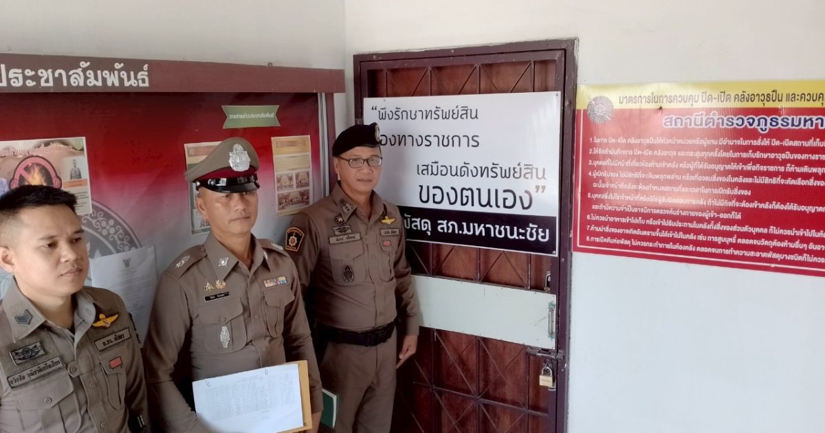 พ.ต.อ.มังกร กวีกรณ์ ผกก.สภ.มหาชนะชัย พร้อมด้วย พ.ต.ต.วิวัฒน์ จำปาแดง สว.อก.มหาชนะชัย ได้ตรวจห้องคลังอาวุธปืน ศาสตราภัณฑ์ ยุทโธปกรณ์ มีภาพมั่นคง แข็งแรง และได้เรียกตรวจสอบการเบิกใช้อาวุธปืนและรถยนต์ รถจักรยานยนต์ของทางราชการ ให้มีความพร้อมในการปฏิบัติหน้าที่