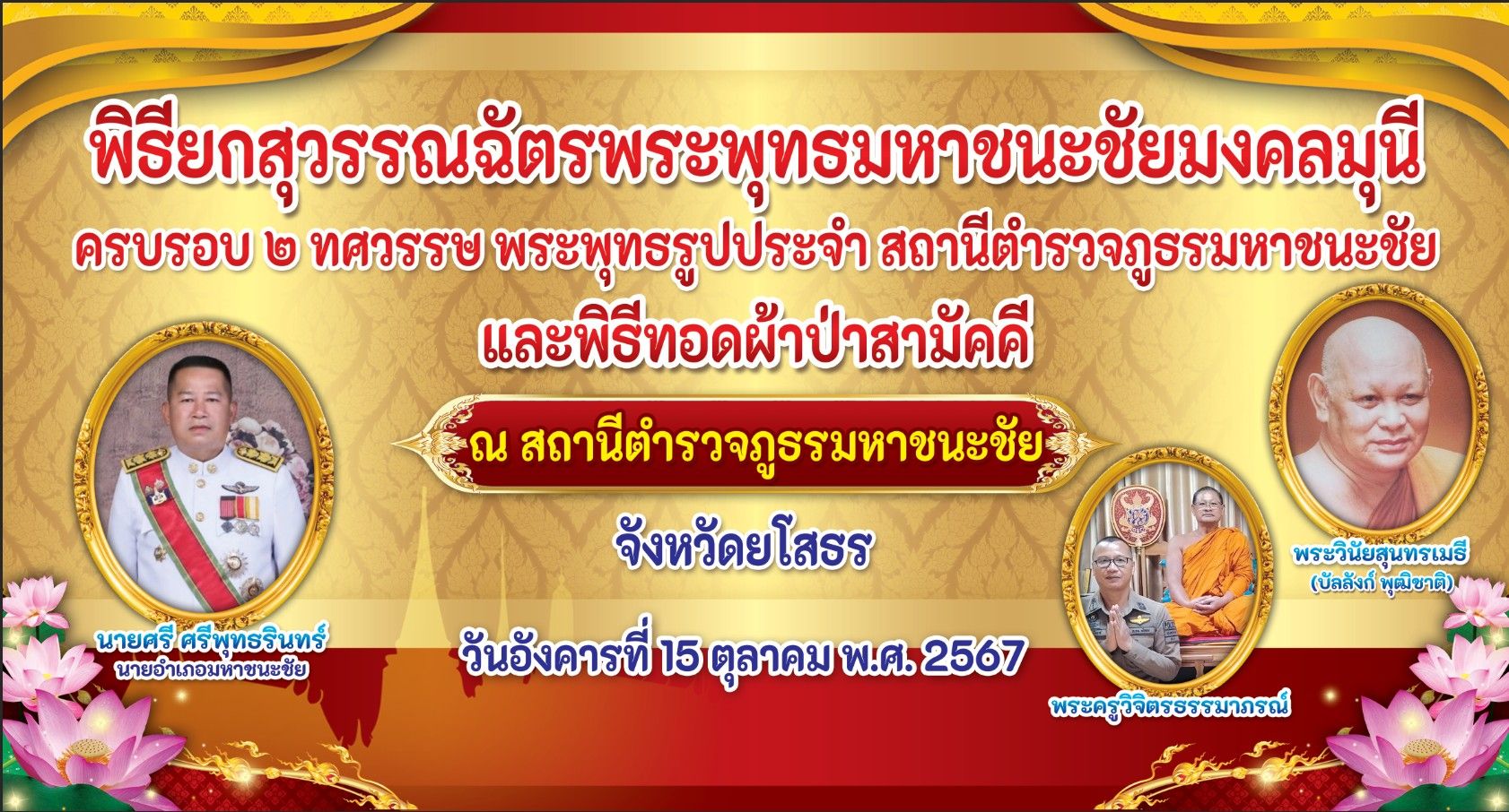 พิธียกสุวรรณฉัตร พระพุทธมหาชนะชัยมงคลมุนี ครบรอบ 2 ทศวรรษ พระพุทธรูปประจำ สถานีตำรวจภูธรมหาชนะชัย และพิธีทอดผ้าป่าสามัคคี